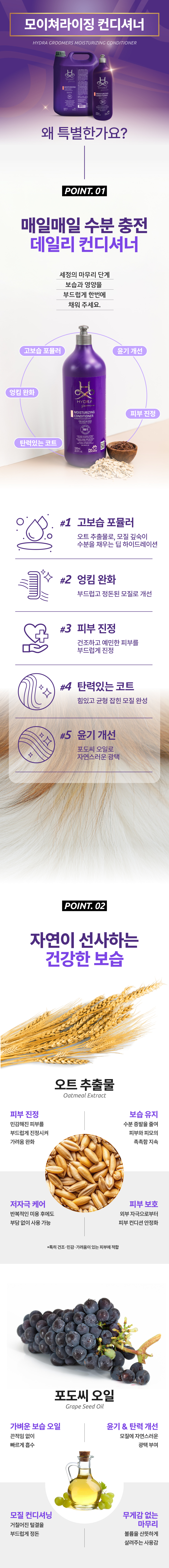 푸석푸석한 피모를 부드럽고 촉촉하게 유지해줍니다.